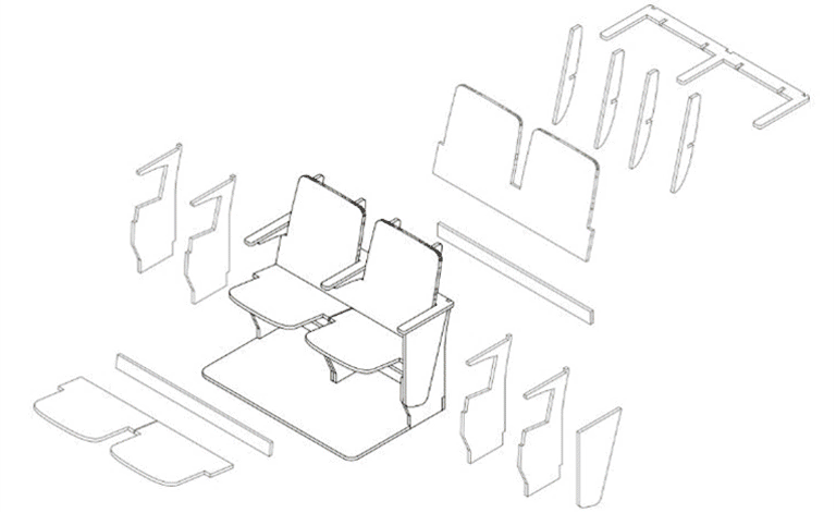 When it was clear that getting seating to test from the manufacturer would cost thousands in production and shipping, we used our in-house fabrication studio to quickly produce seat mockups from the manufacturer's specifications.