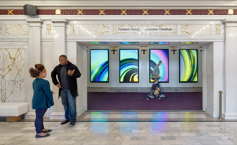 An expanded entrance and lobby weave whimsical and immersive elements (neon lights, props, and a light wall) into the theater's historic fabric while adapting it for the needs of contemporary audiences.
