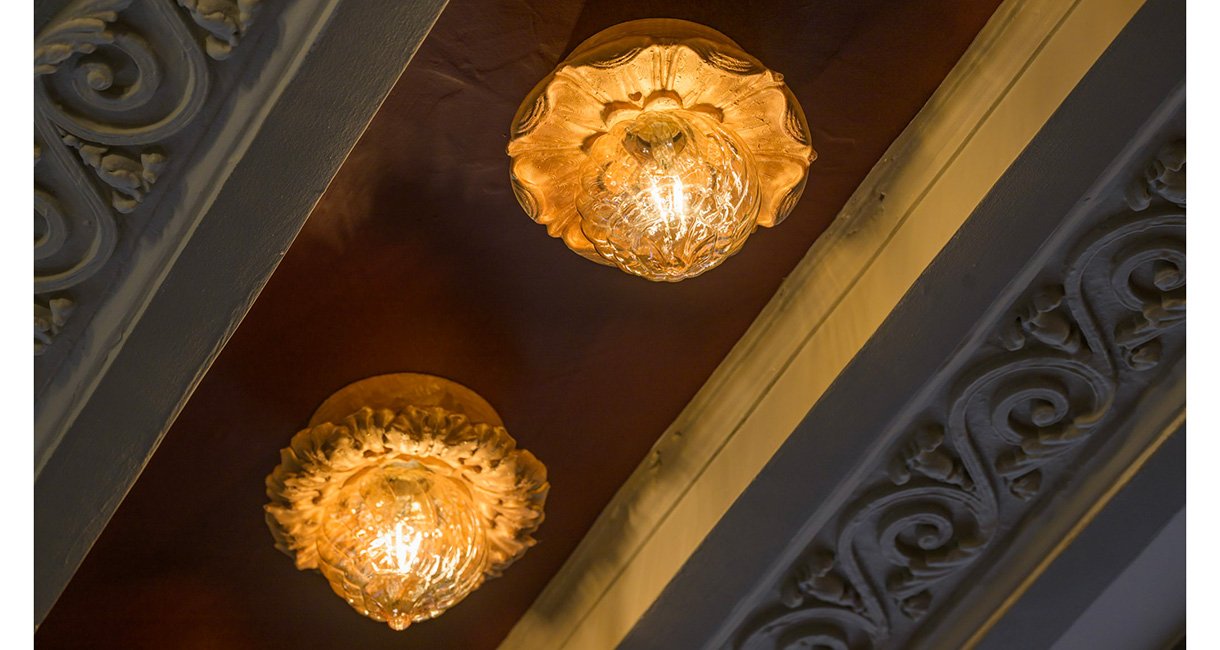 The design team leveraged 3D printing technology to replicate original rosettes around lighting.