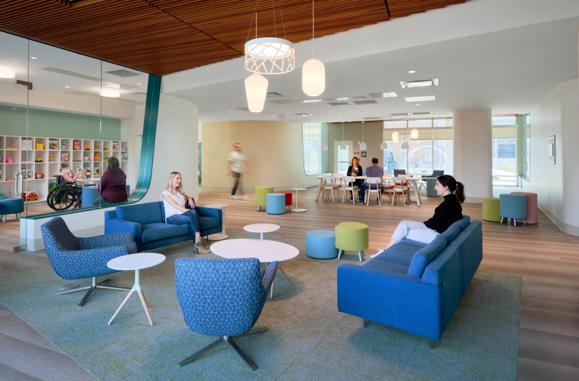 “It’s been amazing to see people come through the building for the first time and hear them react to it,” says Jennifer Loeb, executive director of RMH. “We hear a lot of comments about the big open windows and all the natural light that comes in and that’s really important for our families who are so emotionally and physically exhausted from supporting their kids in the hospital.”