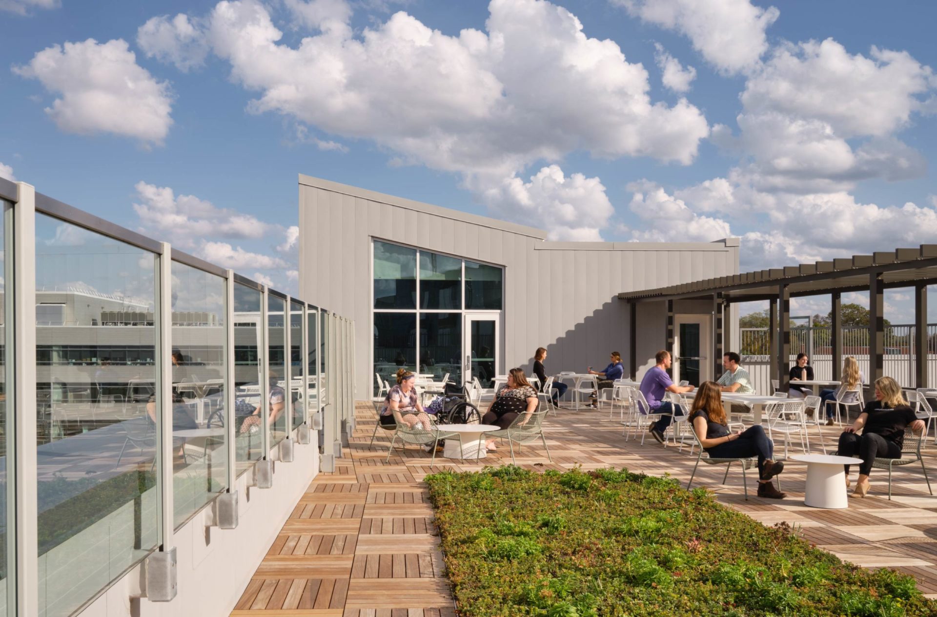 Indoor and outdoor play space, a game room, a rooftop terrace with views of the neighborhood, a commercial kitchen for RMH’s Taste of Hope meal program, and a family kitchen—where RMH families can prepare their own meals whenever they want—are all part of a project that takes unique advantage of its urban site.