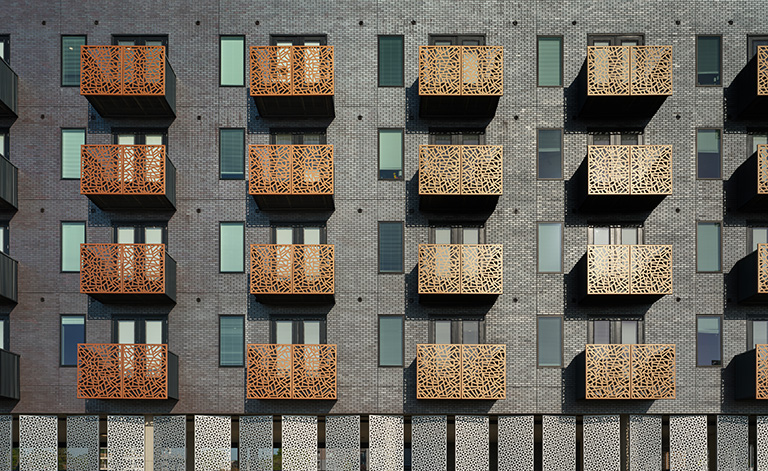 We collaborated with BOK to craft metal balconies and the metal screens at the base of the building. A limited, but high-quality material palette creates a sophisticated profile.